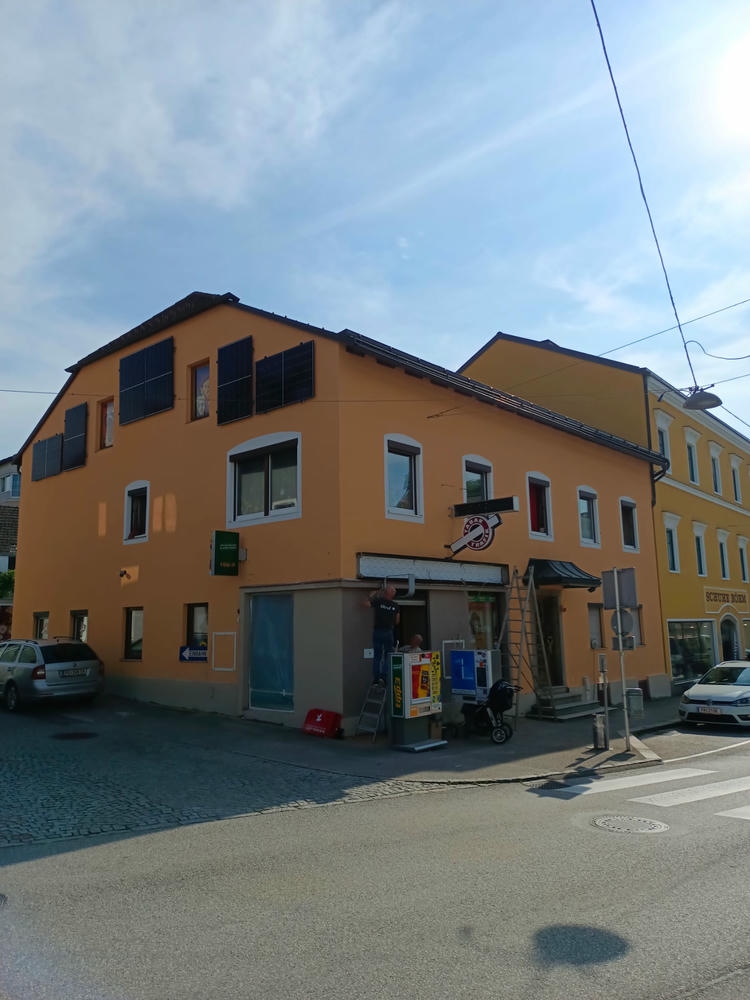 Für die Trafik in Pregarten durfte Malerei Mezei die Außenmalerei umsetzen. Ziel war ein sauberer, frischer Auftritt mit langlebigem Schutz für die Fassade – professionell ausgeführt und optisch stimmig zum Gesamtbild des Gebäudes.